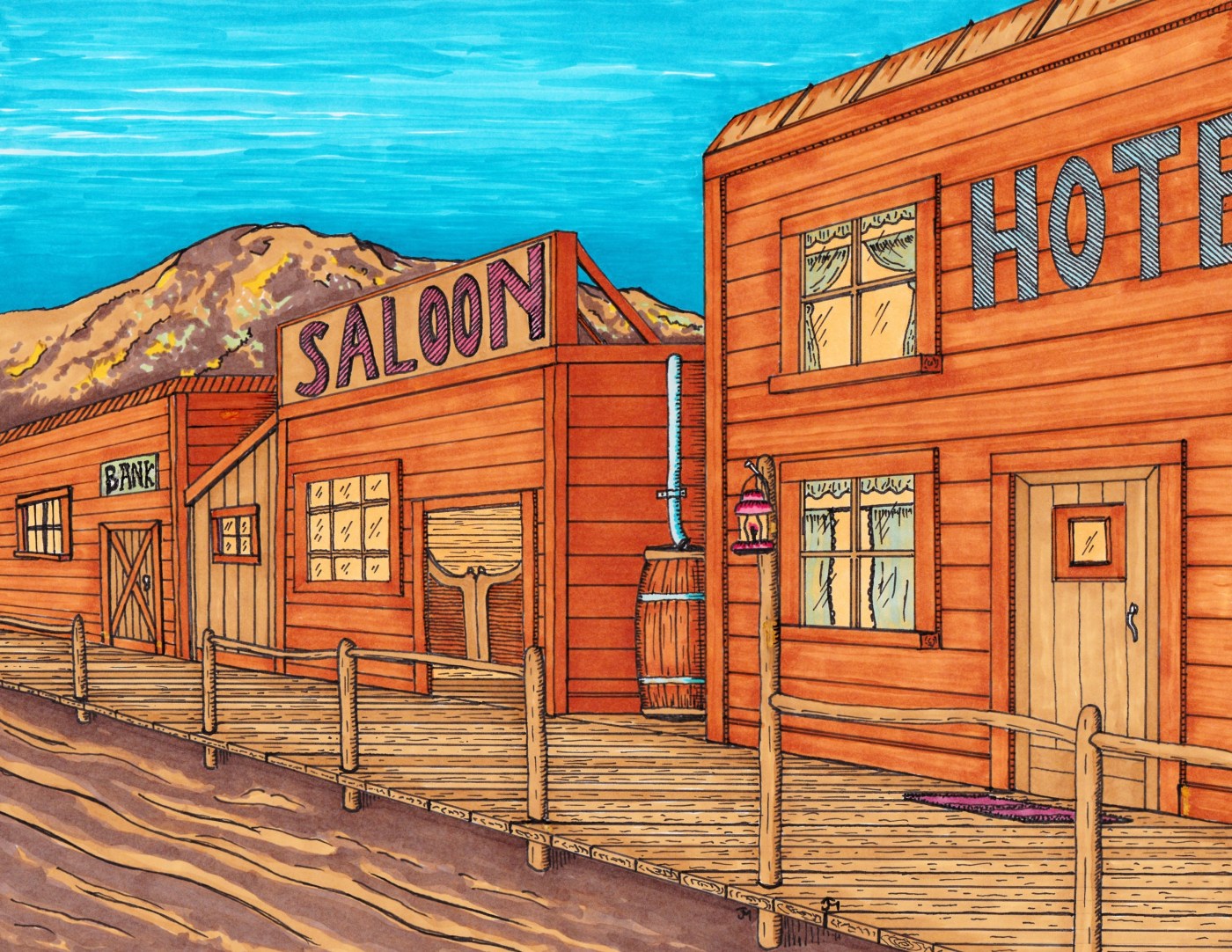 Today’s post sticks to the Western theme. A *few years ago ( Art class in college), I created this rendition of a typical western town. Its inspiration comes from reading too many Western paperbacks.