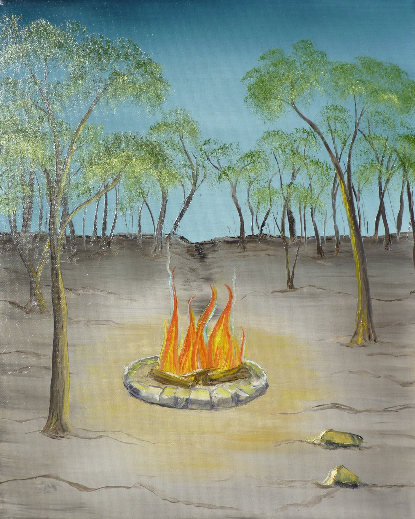 The included painting is my representation of our campsite–awaiting our return.