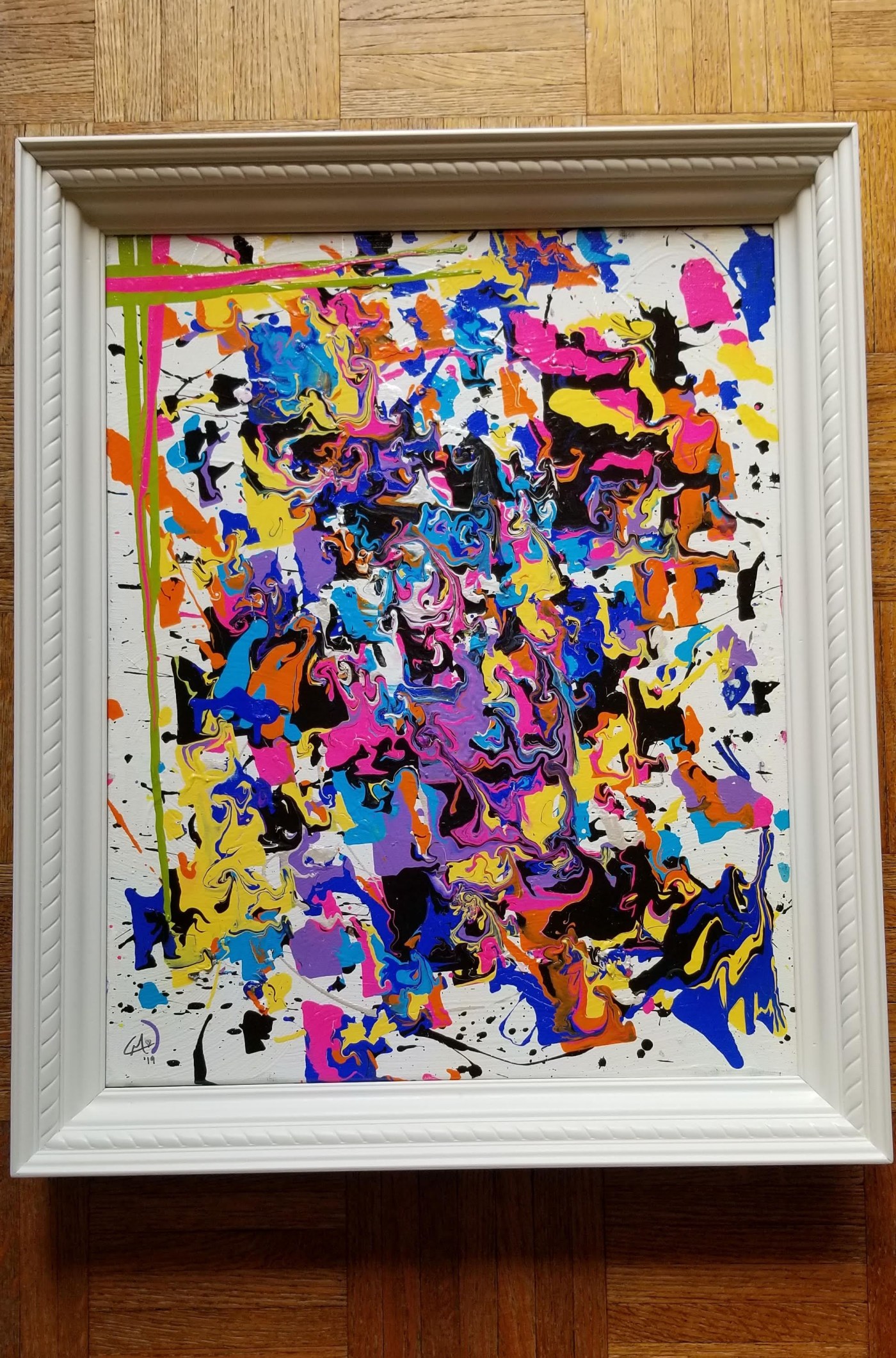 I posted earlier about a frame I made for one of my daughters paintings. After some thought and a few opinions I opted to match the frame with the background of the piece.