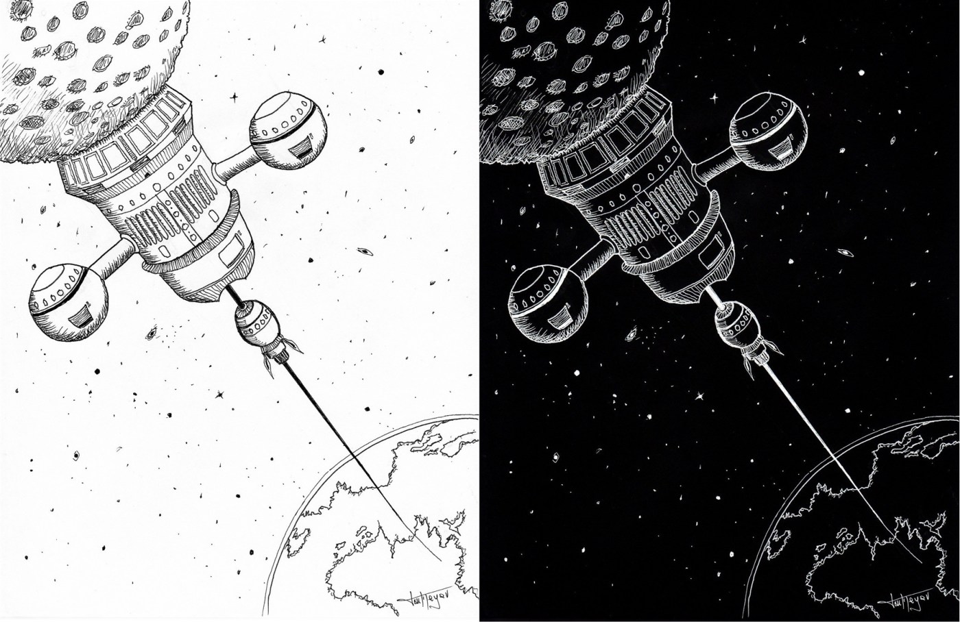 Sometimes it’s interesting to see what a black on white drawing looks like reversed. Which do you find most appealing?