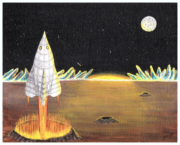 Have you ever dreamed of building your own spacecraft? I’ll bet you have. Although this version lacks the streamlined stainless steel construction and crew abort module, the ride would be one to remember. Powered by Bottle Rockets. (Ink and Markers)