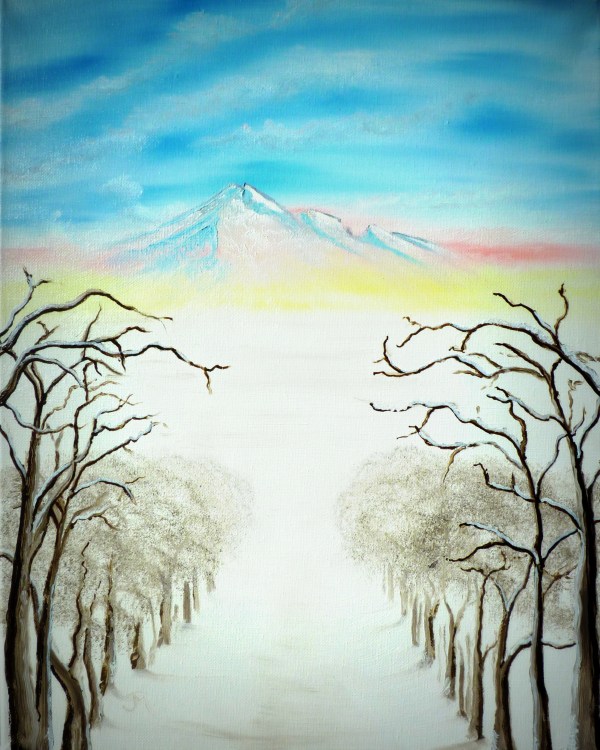 Trees are budding, flowers are blooming, and Spring has sprung. Two days ago it was seventy degrees in St. Louis. Today we are expecting snow. This painting reminds us of what we are leaving behind, and that summer is coming.